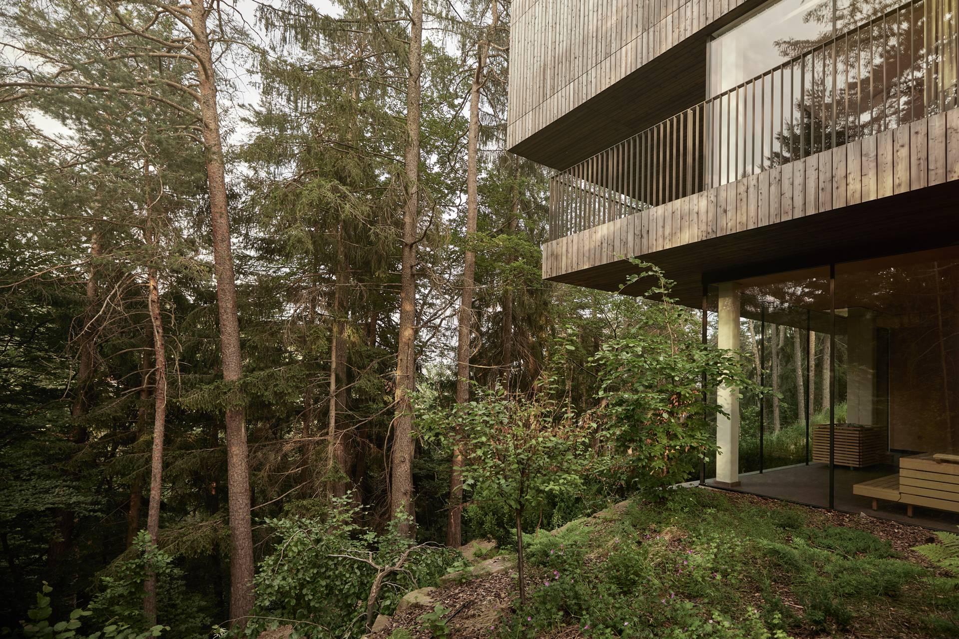 The hotel features 28 meticulously designed rooms and suites that seamlessly blend rustic charm with modern elegance, utilizing natural regional materials such as larch wood, porphyry stone, clay, and limestone. Guests can rejuvenate in the Forest Spa, which includes a sky-high infinity pool with panoramic mountain views, a sauna, and offers yoga and meditation sessions. Culinary delights await at the on-site restaurants, emphasizing organic and locally sourced ingredients to provide an authentic taste of South Tyrolean cuisine.